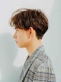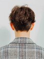 ナチュラカールのメンズショートスタイル!全体の長さはえりあしと耳がスッキリしているのでトップが長めでも重く見えないショートです! バングもおろしてちょいセンター分けなので決めすぎない雰囲気に仕上がります!