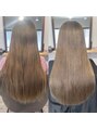 中間から毛先はブリーチを3~4回していてかなりハイダメージの状態からミルボンプレミアムポジショントリートメントでツヤと手触りがかなり良くなりました
