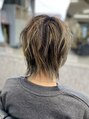 カットベースは今人気のウルフカット、段を幅広く入れることで縦長のシルエットになり、クールなヘアスタイルに。さらに全体にハイライトを入れることでカジュアルでお洒落なヘアスタイルに大変身。