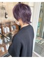 レイヤーを全体にしかっりいれたショートウルフ。カラーはアッシュ系ピンクパープル、ブリーチ2回位。