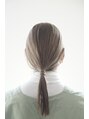 透けるスモーキーベージュカラーです。カットはシンプルにストレート仕上げが素敵です。
