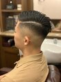 スキンフェードで分け目は左から全体右に流すスタイル分け目にはラインも入れてよりセットしやすくなってますまたセットはポマードでまとまりやすくしてます。