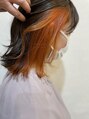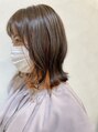 オレンジのインナーカラーがかわいいミディアムスタイル◎ベースのカラーはグレージュで透明感カラーに。【髪質改善/酸熱トリートメント/千葉】
