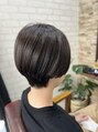 サイドを重たく残したハンサムショートスタイル。カラーはダークエメラルド。【千葉/千葉中央】