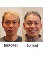 M字が目立たないよう前髪を短く切り込み、シルエットをバランス良く整えました!ハイトーンにする事で白髪もカバーしています!