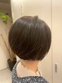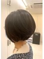 丸くかわいらしいショートボブスタイル。パンツスタイルいも、ワンピースすたいるにもばっちり決まる