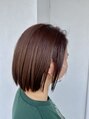 襟足が浮かないギリギリの長さの切りっぱなしのミニボブカラーはチョコレートブラウン少しピンクをいれる事により色持ちと艶感を出しました!