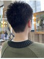 スッキリ、ベリーショート。全体は短くしながらも刈り上げを柔らかく。短いスタイルでもワイルドな雰囲気だけじゃなく柔らかい質感にさせて頂きました。