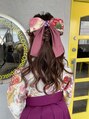 卒業式にぴったりなハーフアップの袴アレンジヘアです。時間外早朝ヘアセットお受け出来ますのでお電話ににてお気軽にお問い合わせください。※時間外時、早朝料金30分につき別途 ¥500 頂戴いたします。