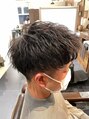 髪質が固くて直毛の髪の毛にソフトパーマをかけ、毛先に動きと柔らかさのでるパーマをかけたスタイルです!!横の毛も広がりやすい髪質ですが、抑えるようにパーマかけることによりセットもラクになります!(京成曳舟店 鶴岡 27032022)