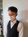 サイドを刈り上げた前下りのショートスタイルバック(後頭部)を低めに設定してクラシックな雰囲気に!また、癖毛をしっかりいかせる大人ショートスタイルです!