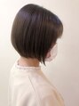シンプルな前下がりベースのショートボブ☆短すぎないので、挑戦しやすいショートです。カラーは暗めのアッシュブラウンで、赤みを消して柔らかい雰囲気のカラーです☆