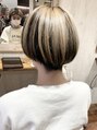 トップの一部分だけ2回ブリーチをしたデザインカラー。前回ブルーにさせていただいて、今回は紫シャンプーで綺麗をキープしていただいている状態から赤味のないラベンダーグレーを入れました!長さはサイドを3ミリに刈り上げたツーブロスタイルです。