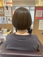 可愛く女性らしいシルエットのミニボブにカットしました♪全体に内巻きカットを入れてありますので乾かすだけで簡単に収まりますよ。カラーはイルミナカラーのオーシャンで赤みを抑えながら艶と透明感を出しました♪ツヤツヤなボブへお任せ下さいませ♪