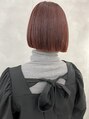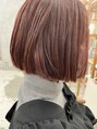 インナーにハイライトブリーチをいれたピンクパープルカラーぱつっとボブ。インナーにハイライトを入れることで濃いめのピンクがチラッと見えるのがかわいいボブスタイルです。