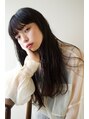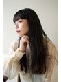 ショートバングと胸元までのロングヘア―スタイル透け感を出すようにカットし、重くなり過ぎないようデザインしてあります。カラーでもブルーブラックをいれて透明感をアップしてます。