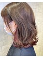 - インナーカラー(ブリーチ有り)にピンクをのせて、コテで外ハネ・ウェーブで仕上げました^o^
