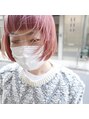 人気のハイトーン ペールピンク切りっぱなしボブに合わせて。