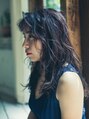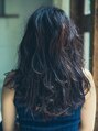 ヘアカラーは暗めのダークブラウンに、透明感が出るようにヴァイオレットをまぜたカラーリング。室内では暗く、太陽光に当たると明るく透明感が出やすくなっています。全体的にウェーブになるようにスタイリングして、束間を出しています。【新小岩】