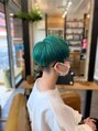 派手髪はお任せください!今回は刈り上げマッシュにミントグリーンのカラーです♪軽めのマッシュにブルー系のグリーンで立体感と透け感をプラスしました!!透明感のある色がこの季節にぴったりです^ ^!