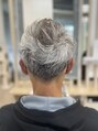 2ブロ3mmからフェードでつなぎ、トップをセンターによせてセットするジェットスタイル。バングはアップバングで爽やかさを演出。つぶれやすい方はニュアンスパーマがオススメ◎