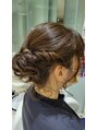 サイドの髪の毛をねじり編みをしてピンで留め、後ろでまとめおくり毛を取り入れ華やかな雰囲気にしました。