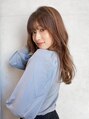 ベースはプツッと重めに顔まわりにレイヤーを入れてふんわり動きプラス。目の上ギリギリラインにカットして小顔前髪に。カラーは艶っぽく透けるショコラベージュです。