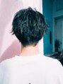 耳周り、バックをすっきりと短くしたさわやかなツーブロックのアップバングスタイルです。前髪は、黒目の上からしっかりとあげることでバランスの良いスタイルに。全体の毛先は無造作に動かして毛束感をプラスしています。