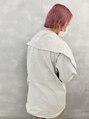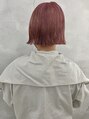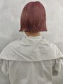 ハイトーンピンクノぱつっとボブ。襟足ギリギリの長さのボブを水平ラインでぱつっとカット。