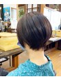 サイドはアゴ上ラインの少し短めのショートボブ。頭の丸みを生かしたスタイルです。カラーはアヴェダカラーでツヤツヤに♪