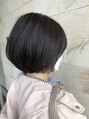 短すぎない丸みのあるショートボブです。耳にかけた時に前髪との隙間が開かない様にサイドバングを作りました。ダークカラーですが、赤みが出ないカラーで大人っぽくしました。