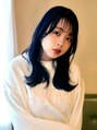 ローレイヤーのソトハネミディアムにブリーチ後にディープネイビーてカラーリング!スタイリングや光りの加減で透明感が増したり深みのあるネイビーに見えたりとシーンによって見え方が変化しますよ!ラフウェーブヘアやアレンジヘアと比較してみてね