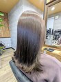 色が抜けた状態から、暗くなりすぎないように落ち着かせた透明感カラー◎髪質改善トリートメントで色持ちと艶もアップします。