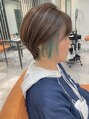 白髪の気になるところをブリーチしてターコイズをのせてミズイロに伸びてきて白が生えても毛先と馴染んで気になりを抑えます!
