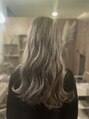 ハイライトを入れてからの全体ブリーチ。ハイライト部分があるおかげでいい感じに発色してました。ミルクティー系のグレーです。