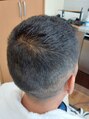 周りは1~4mmの短いフェードスタイルに、前流しのアイロンパーマスタイルです。