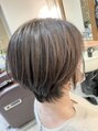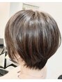 お肌馴染み、印象を柔らかく見せる赤味の少ないベージュカラー☆襟足はタイトにトップはふんわりさせメリハリを。明るさを感じさせたい、白髪が気になる方はハイライトを入れるのがオススメ!