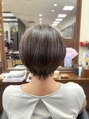 お客様のご要望は軽い感じでお手入れが簡単なスタイルのご要望でした。ボリュームを前下がりのラインで説定することで綺麗なフォルムを作ることが出来ます。襟足を自然な感じなじませることでお洒落な印象に