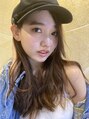 ベージュ系アッシュ、セミロング巻きおろし&帽子/ホットペッパービューティー