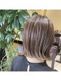 アゴ下、肩上。 切りっぱなしボブが1番活きる長さでカット。内巻き、外巻き、Sカール、ヘアアレンジ対応の万能ヘア。グレージュカラーでやわらかく。