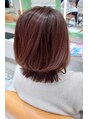 イルミナカラーの新色アンバーでツヤツヤのモーヴブラウンに☆スタイルチェンジしやすいように重めのボブウルフです。