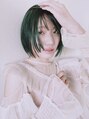 顔まわりにポイントを作って、光に映えるグリーンカラーでワンランク上のボブスタイル