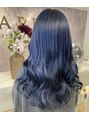 ダークブルー寒色系カラーで個性的に髪質改善ツヤ髪