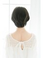 丸みのある曲線が綺麗なショートボブ。少し長めの前髪がフェミニンなムードを演出。カラーは、アッシュブラウンで陽に当たると柔らかい色で、一見染めていない地毛のような落ち着きがあるナチュラル感を出している。