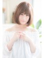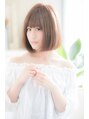 ベーシックなボブスタイル。輪郭を隠すようにワンカールで包み、前髪もラウンドさせて二重の小顔効果。重くなりがちだけど、ベージュ系のカラーで軽さと柔らかさを出して◎
