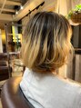 あえて根元の地毛を活かしたカラーデザインのボブ。根元伸びも気になりにくく、こなれ感の出るスタイル。シンプルなボブで扱いやすく、アレンジもできるスタイルで幅広い方におすすめです