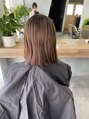 首元がほっそりみえて乾かしただけでまとまるミニボブ◎スタイリングはオイルをさっとつけるだけで簡単です!いまっぽいミニボブはあえて毛先のプツッとラインを残すのがおすすめです!カラーはブリーチなしのミルクティーカラーです!