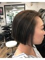 ほんの少し前下がりボブです!バックに少しグラデーションが入ってます!カラーは7.5トーンのアッシュ系です!サイド下と表面に下地にハイライト入ってます!明るいハイライトだったためほんの少ししか目立たないようにしました!