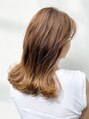 透け感のある前髪がポイントのミディアムに明るめのオレンジベージュで柔らかさのある暖かい季節におすすめのスタイルです。※状態によってはブリーチが必要な場合があります。