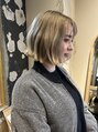 2ブリーチでプラチナグレージュに。切りっぱなしボブと相性バッチリ◎